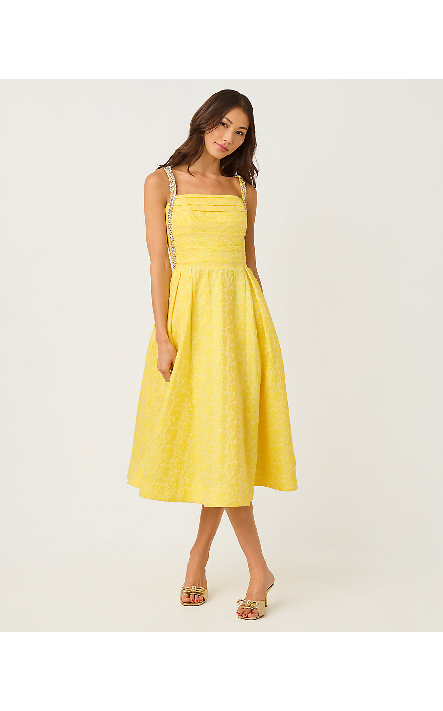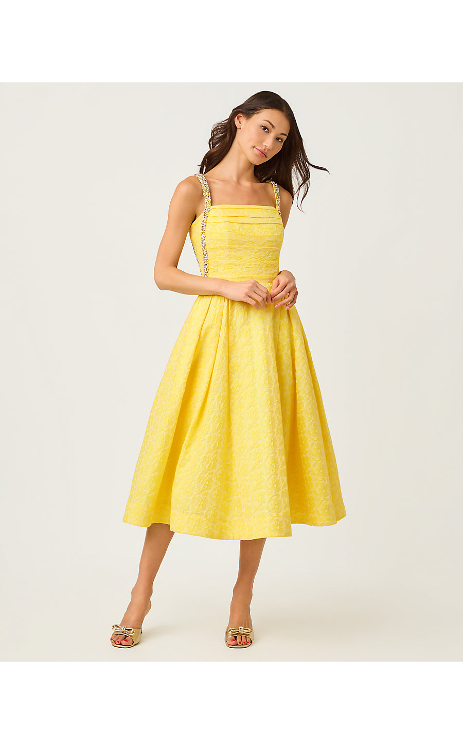 CARLINA MIDI DRESS | ESTELLE YELLOW IRIDESCENT FLORAL JACQUE