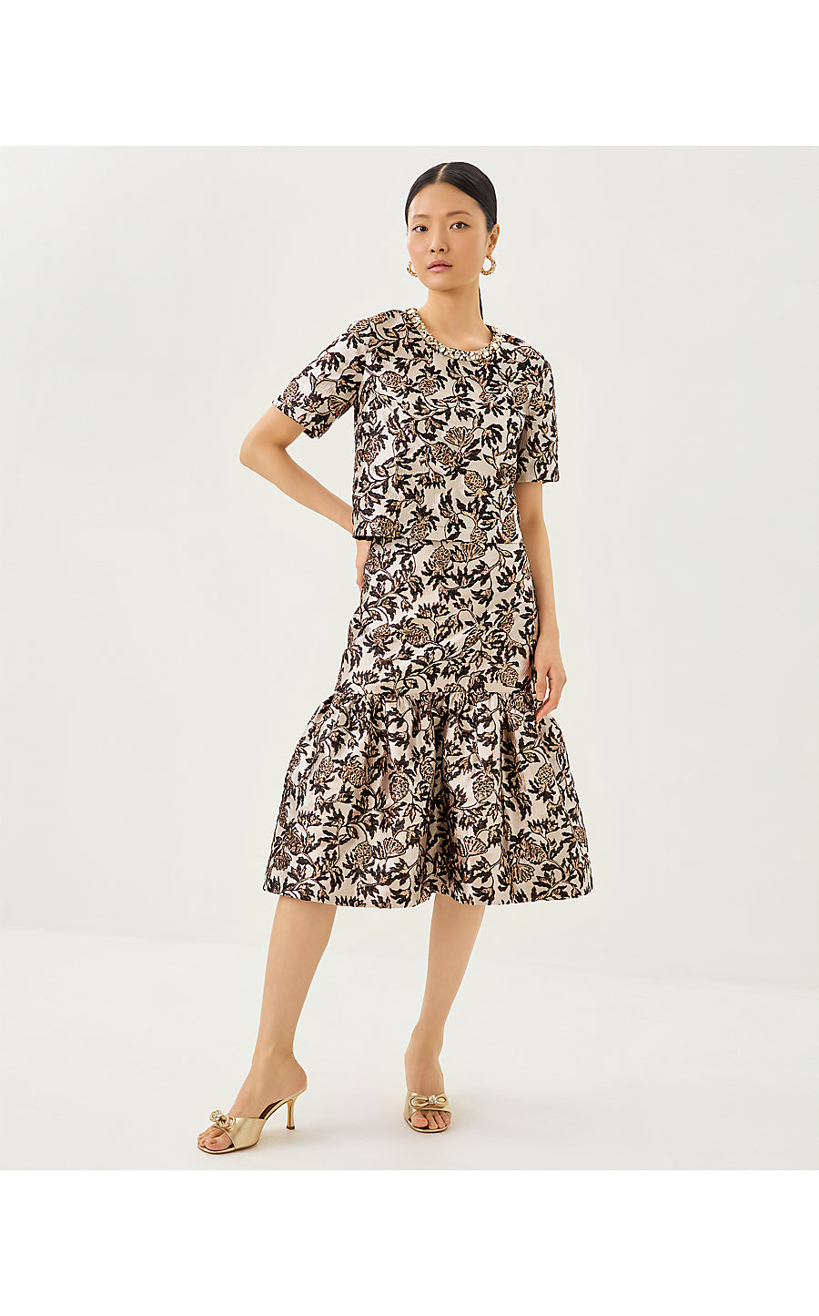 VALORA MIDI SKIRT | NOIR PINEAPPLE PUFF METALLIC JACQUARD